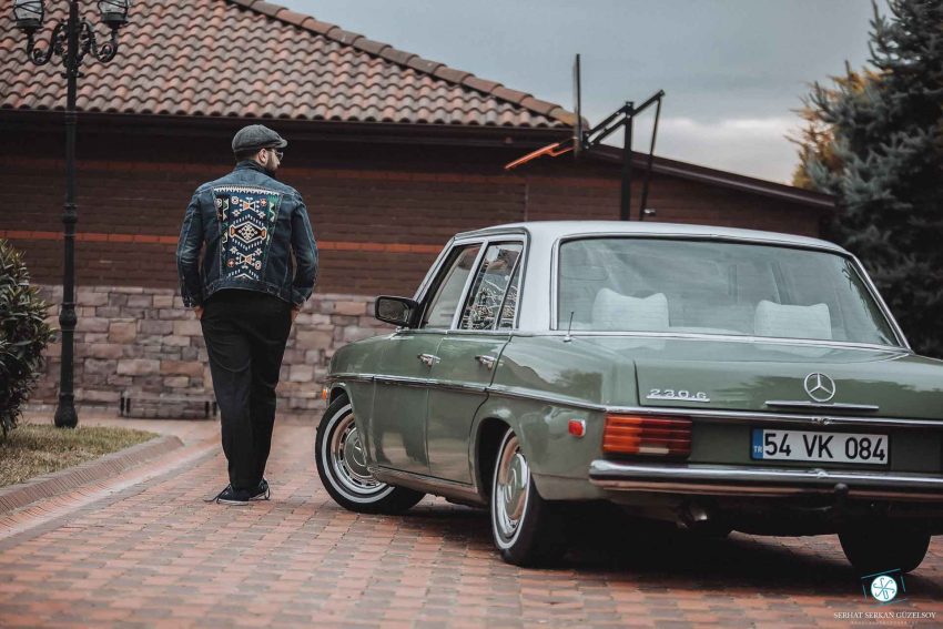 During the shoot, we came up with the idea of incorporating an old Mercedes car, symbolizing their love and passion. The vintage car added a truly nostalgic feel to the shoot, highlighting the timelessness of their love. Including modern Mercedes models also portrayed Nisa and Kerem as a couple bridging the past and the future.